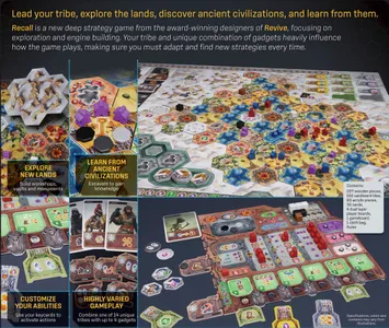 Embark on an epic journey of exploration and innovation in Recall, the deep strategy board game from Korea’s HIT Games. For 1–4 players ages 14 and up, and playable in about 90 minutes, Recall invites you to lead a unique tribe, build powerful engines, and uncover the secrets of ancient civilizations.