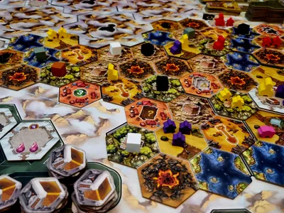 Start with one of fourteen asymmetric tribes and one of eighteen unique gadgets, each offering distinct strategies and opportunities. On your turn, use keycards to activate action boxes and unlock powerful combos—or recall your keycards to produce resources and prepare for your next big move. Explore modular lands, search dig sites for ancient relics, and upgrade your tribe with new abilities, workshops, and monuments.